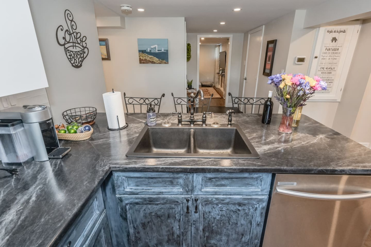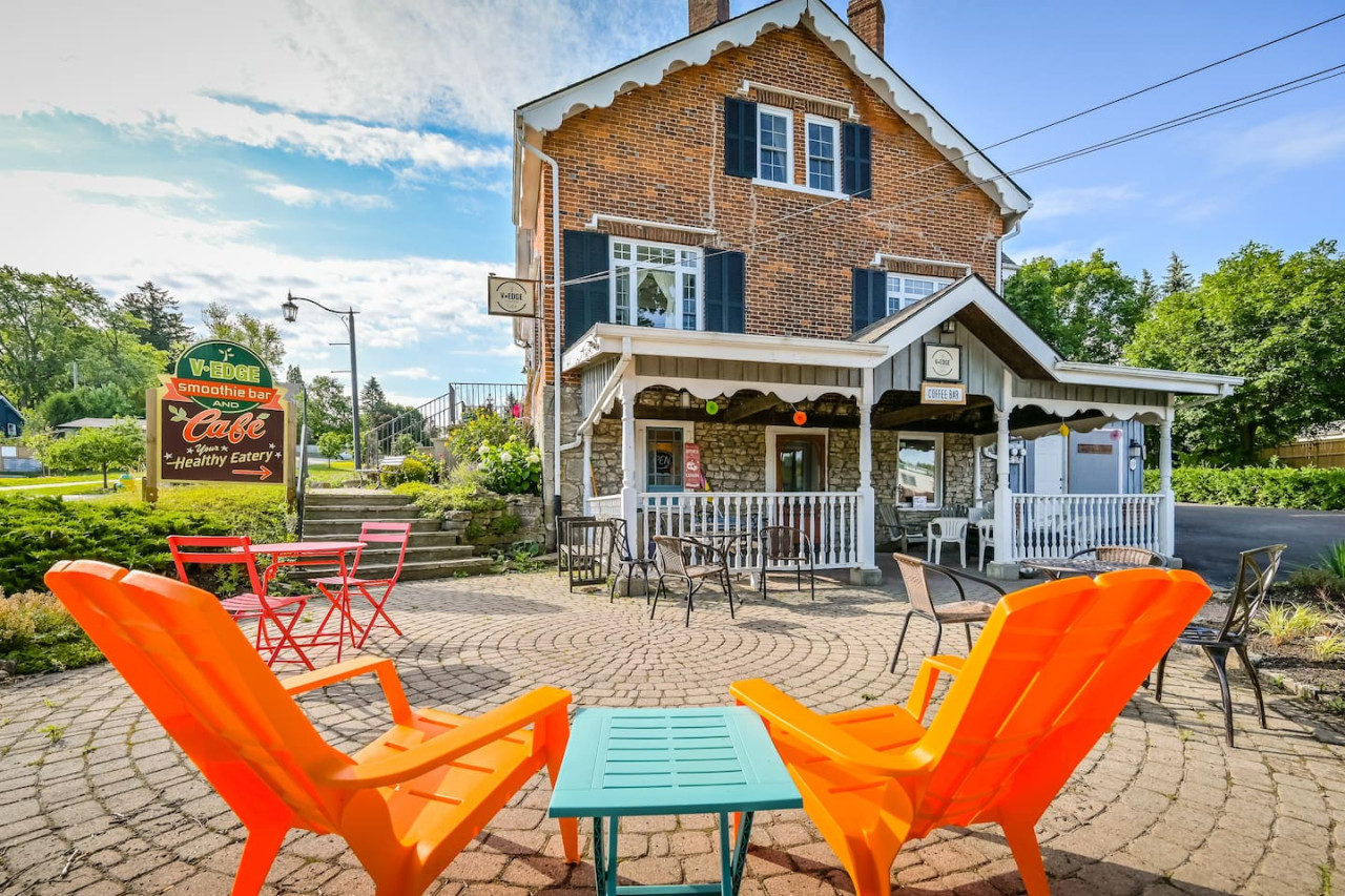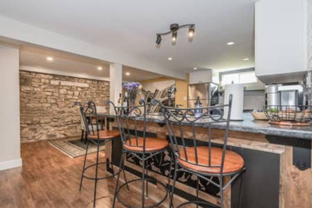 / nightIf your stay begins with location this place is it. Situated one street from the Elora Mill and all it has to offer, your stay will be convenient and carefree. Enjoy your morning coffee, sitting in your building's garden with an unrestricted view of the Grand River, the Elora Mill and Mill St. A simple crossing of the street and you will be standing on the steel covered bridge looking down at the Grand river and its Tooth of time. You are now only a few footsteps away from all that is, Elora. From the front of your building you will find yourself looking at the historic armory, now a very convenient liquor store if you so wish to indulge. Our Gingerbread House host the Sugar Skulls Ice Cream Speaking of which is part of a totally renovated two bedroom apartment with its century old accent walls. You will find each room is carefully designed for comfort. Even the family room has a sofa bed for extra guests. The renovated bathroom has a modern clean look . come stay at our Gingerbread house where your biggest regret will be not staying long enough. All around the building there are bistro tables and chairs ,they are yours also to use and share. There is a laundry room on the other side of your mud room John, within the hour If you wish to stay for one night , Message me. The historical charm and natural beauty of Elora makes this area a must see. From the Gorge and the Grand river to the quarry where bathers gather. Elora also has biking and walking trails with stunning views. Afterwards you may want to visit all the interesting shops or dine at one of Elora' many restaurants. From where you are located, a simple walk will take you to most places. Outside of that area Bikes, taxi and cars will be the desired mode